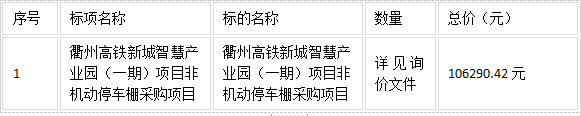 二、項(xiàng)目名稱:衢州高鐵新城智慧產(chǎn)業(yè)園(一期)項(xiàng)目非機(jī)動(dòng)停車棚采購項(xiàng)目