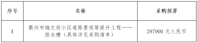 一、項目名稱:衢州市瑞文府小區(qū)道路景觀等提升工程——排水槽