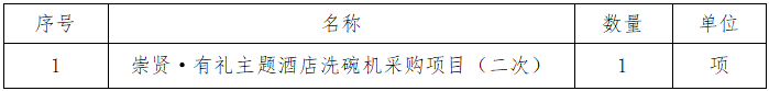 一、采購(gòu)項(xiàng)目名稱(chēng):崇賢·有禮主題酒店洗碗機(jī)采購(gòu)項(xiàng)目(二次)