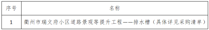 一、采購項(xiàng)目名稱:衢州市瑞文府小區(qū)道路景觀等提升工程——排水槽