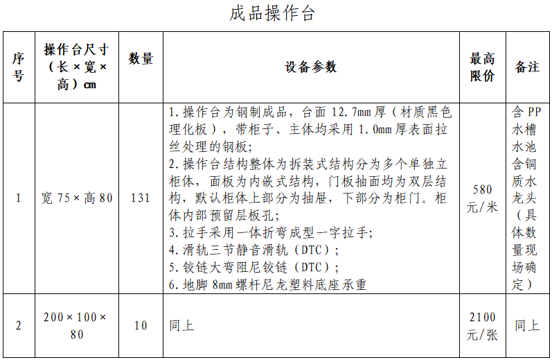 根據(jù)《衢州市國有企業(yè)采購管理辦法(試行)》(衢國資發(fā)〔2025〕181號(hào))規(guī)定,以公開詢價(jià)方式對(duì)衢州市建設(shè)工程質(zhì)量檢測有限公司新辦公試驗(yàn)場地(試驗(yàn)室)成品操作臺(tái)采購項(xiàng)目(二次)進(jìn)行采購,歡迎合格的供應(yīng)商參加。