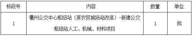 二、項(xiàng)目名稱:衢州公交中心樞紐站(原農(nóng)貿(mào)城場(chǎng)站改造)-新建公交樞紐站人工、機(jī)械、材料項(xiàng)目