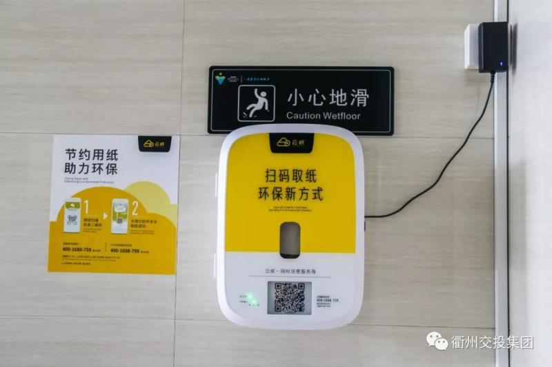 公共衛(wèi)生間內(nèi)設(shè)置了自助取紙機(jī),只要使用手機(jī)微信掃描二維碼關(guān)注微信公眾號后,便可免費(fèi)獲取紙巾。
