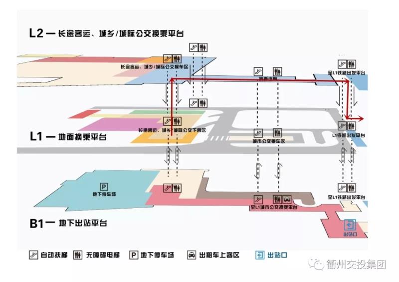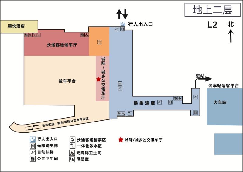 抵達(dá)地面一層城鄉(xiāng)/城際公交下客區(qū)——乘坐自動(dòng)扶梯或無障礙電梯前往二樓——右轉(zhuǎn)后由西向東步行通過換乘連廊——抵達(dá)盡頭后乘坐自動(dòng)扶梯或無障礙電梯向下——右轉(zhuǎn)至鐵路出發(fā)平臺。