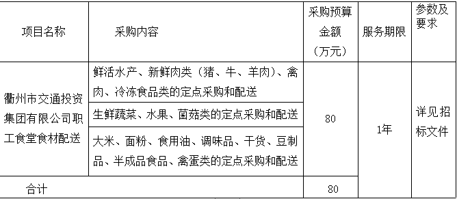 項(xiàng)目名稱:衢州市交通投資集團(tuán)有限公司職工食堂食材配送采購項(xiàng)目