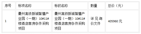 二、項(xiàng)目名稱:衢州高鐵新城智慧產(chǎn)業(yè)園(一期)10#11#樓酒店客房雜件采購(gòu)項(xiàng)目
