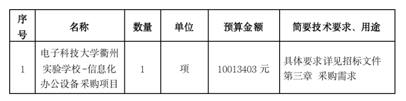 項(xiàng)目名稱:電子科技大學(xué)衢州實(shí)驗(yàn)學(xué)校-信息化辦公設(shè)備采購(gòu)項(xiàng)目