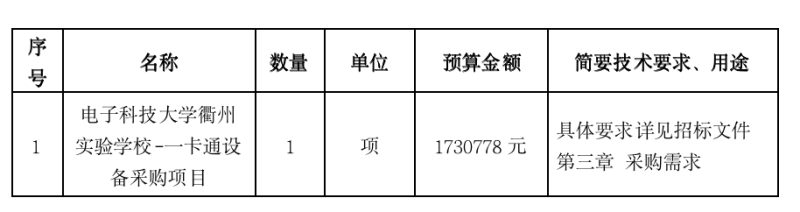 項目名稱:電子科技大學(xué)衢州實驗學(xué)校-一卡通設(shè)備采購項目