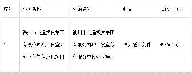 二、項(xiàng)目名稱:衢州市交通投資集團(tuán)有限公司職工食堂勞務(wù)服務(wù)單位外包項(xiàng)目