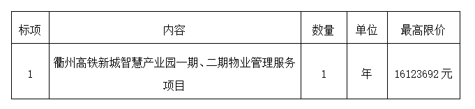項目名稱:衢州高鐵新城智慧產(chǎn)業(yè)園一期、二期物業(yè)管理服務(wù)項目