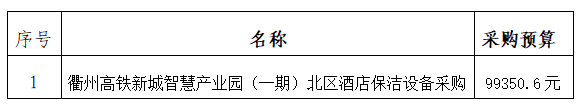 一、采購項目名稱:衢州高鐵新城智慧產(chǎn)業(yè)園(一期)北區(qū)酒店保潔設備采購。