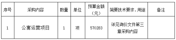 根據(jù)《衢州市國有企業(yè)采購管理辦法(試行)》規(guī)定,衢州市智信工程咨詢有限公司受衢州市瑞城科技產(chǎn)業(yè)服務有限公司的委托,就衢州高鐵新城智慧產(chǎn)業(yè)園(五期—1)A區(qū)北側(cè)(1-5層)公寓運營項目采購進行詢價,本項目為非依法必招項目,現(xiàn)請合格供應商參加投標。