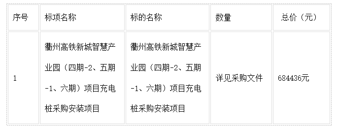 二、項目名稱:衢州高鐵新城智慧產(chǎn)業(yè)園(四期-2、五期-1、六期)項目充電樁采購安裝項目