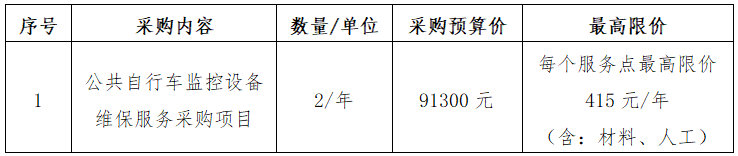 二、項目名稱:公共自行車監(jiān)控設(shè)備維保服務(wù)采購項目