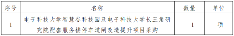 一、采購項目名稱:電子科技大學智慧谷科技園及電子科技大學長三角研究院配套服務樓停車道閘改造提升項目