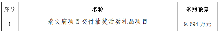一、采購(gòu)項(xiàng)目名稱:瑞文府項(xiàng)目交付抽獎(jiǎng)活動(dòng)禮品項(xiàng)目