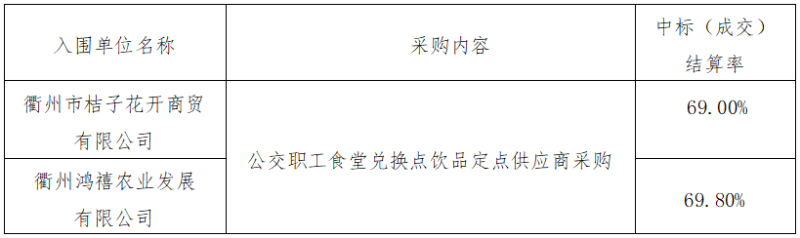五、采購內(nèi)容:公交職工食堂兌換點(diǎn)飲品定點(diǎn)供應(yīng)商采購(具體詳見詢價文件)。