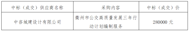 三、標(biāo)項名稱:衢州市公交高質(zhì)量發(fā)展三年行動計劃編制服務(wù)采購項目