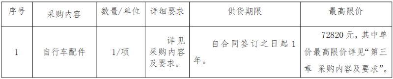 二、項(xiàng)目名稱:衢州通達(dá)公共自行車(chē)服務(wù)有限公司自行車(chē)配件采購(gòu)項(xiàng)目