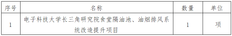 一、采購(gòu)項(xiàng)目名稱:電子科技大學(xué)長(zhǎng)三角研究院食堂隔油池、油煙排風(fēng)系統(tǒng)改造提升項(xiàng)目