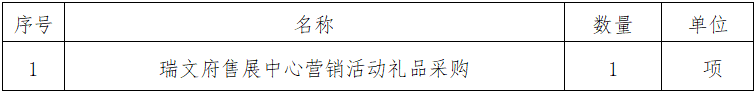 一、采購(gòu)項(xiàng)目名稱:瑞文府售展中心營(yíng)銷(xiāo)活動(dòng)禮品采購(gòu)
