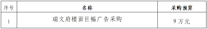 一、采購項(xiàng)目名稱:瑞文府樓面巨幅廣告詢價(jià)采購項(xiàng)目