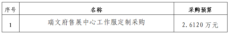 一、采購(gòu)項(xiàng)目名稱(chēng):瑞文府售展中心工作服定制采購(gòu)詢(xún)價(jià)項(xiàng)目