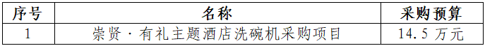 一、采購項目名稱:崇賢·有禮主題酒店洗碗機采購項目。