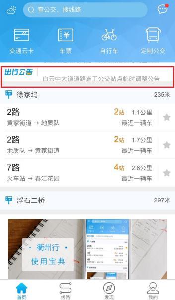 一、衢州行APP。在衢州行首頁出行公告欄中會滾動彈出查詢公交公司發(fā)布的相關(guān)公告(如下圖),市民可以根據(jù)各自的需求進(jìn)行查詢;