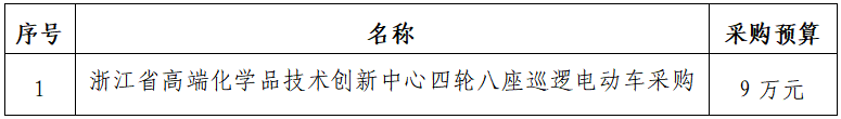 一、項(xiàng)目名稱(chēng):浙江省高端化學(xué)品技術(shù)創(chuàng)新中心四輪八座巡邏電動(dòng)車(chē)采購(gòu)
