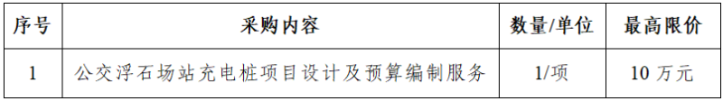一、采購項目名稱:公交浮石場站充電樁項目設(shè)計及預(yù)算編制服務(wù)
