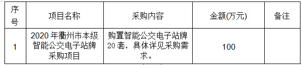 參照《中華人民共和國政府采購法》、《政府采購貨物和服務(wù)招標(biāo)投標(biāo)管理辦法》等規(guī)定,浙江中信工程咨詢有限公司受浙江衢州公交集團有限公司委托,就2020年衢州市本級智能公交電子站牌采購項目進行公開招標(biāo)采購,歡迎國內(nèi)合格的供應(yīng)商前來投標(biāo)。