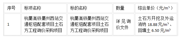 二、項(xiàng)目名稱:杭衢高鐵衢州西站交通樞紐配套項(xiàng)目土石方工程詢價(jià)采購項(xiàng)目