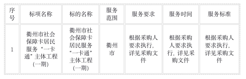 二、項(xiàng)目名稱:衢州市社會保障卡居民服務(wù)“一卡通”主體工程(一期)采購項(xiàng)目