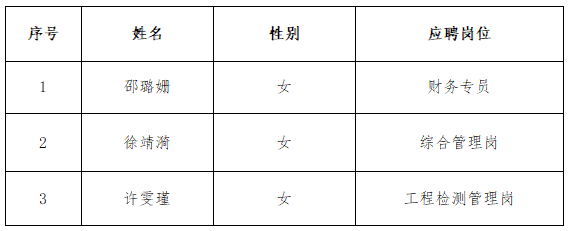 根據(jù)《衢州市交通投資集團有限公司浙江省國有企業(yè)高校招聘會工作方案》要求,現(xiàn)將擬錄用人員名單公示如下: