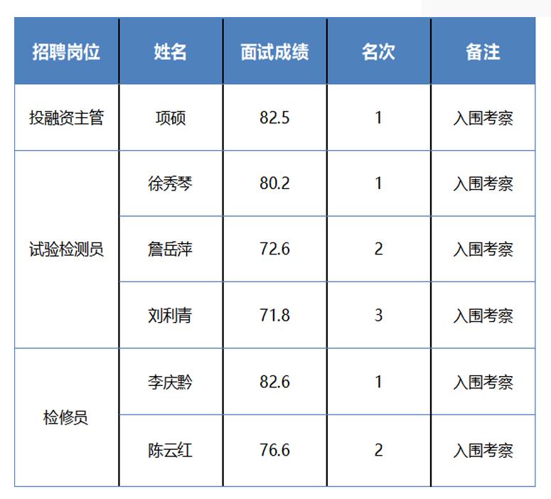 根據(jù)《衢州市交通投資集團(tuán)有限公司招聘工作人員公告》,現(xiàn)將入圍考察人員的名單公布如下: