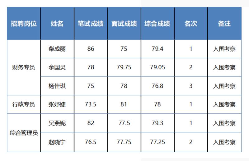 注:網(wǎng)絡(luò)信息技術(shù)員崗位根據(jù)招聘公告第三條第四點(diǎn)“面試成績合格分為60分,面試不合格者,不再列入入圍對(duì)象”要求,該崗位無入圍人員。