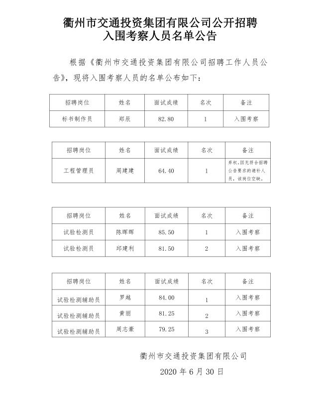 附件:公開招聘入圍考察人員名單公告